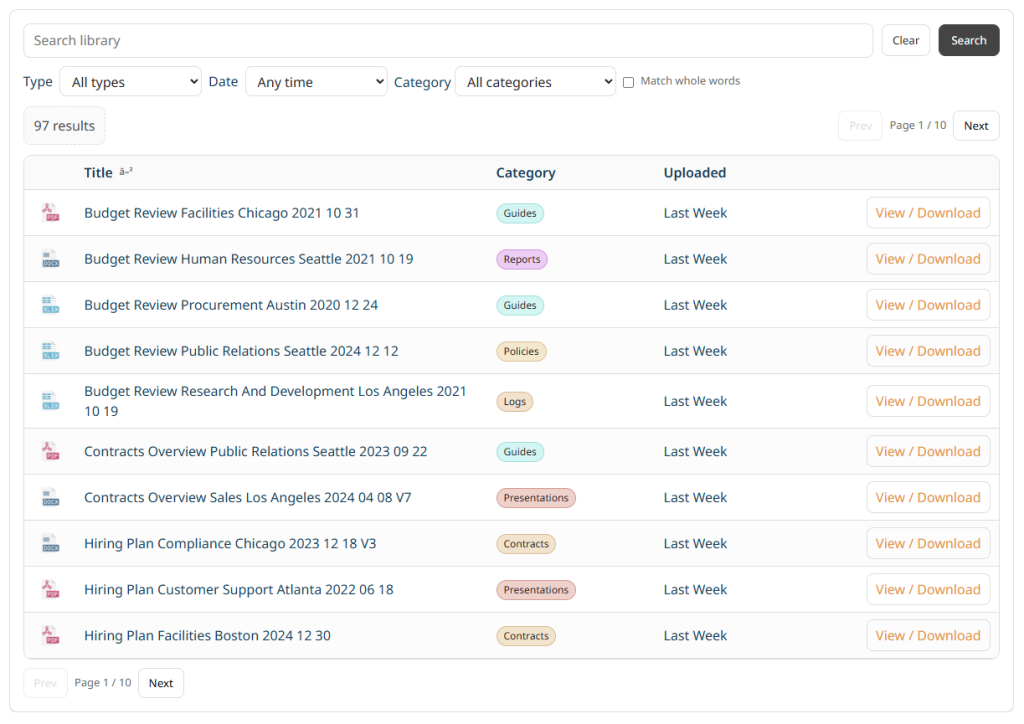 Ansid Library is a WildApricot gadget that automatically displays files in a specified folder with full search capabilities. It automatically determines the document title and can automatically apply category labels. One-click install – no code to add, no files to upload.